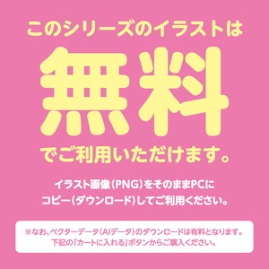 編集が可能なベクターデータ(AIデータ)は有料となります。450円(税込)をお支払い頂くと上記のイラストデータ(ベクター・PNG)全てを収録したセットをダウンロードできます。