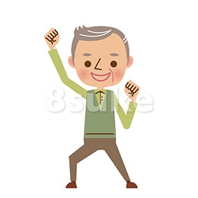 イラスト素材:ガッツポーズをするおじいちゃん(ベクター・JPG)